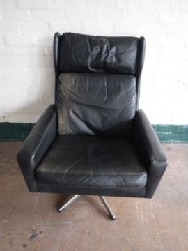 A twentieth century black leather Danish wingback armchair on chrome base