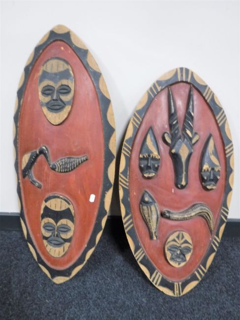 Two hand painted tribal shields