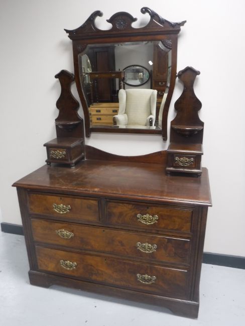 A Victorian walnut four drawer dressing chest
