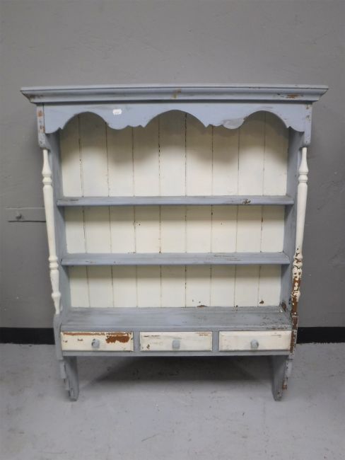 A painted pine kitchen wall rack