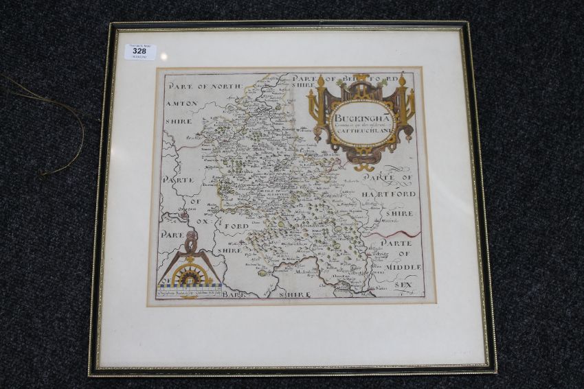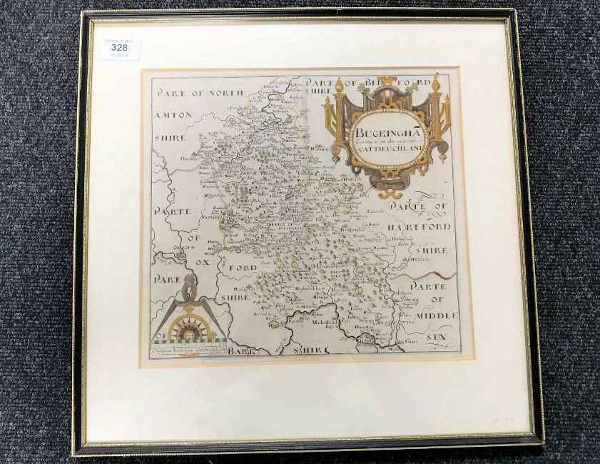 An 18th century hand coloured map after Christopher Saxton and William Hole, Buckingham