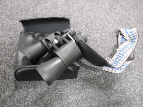 A pair of Minolta binoculars, MK 1521158, 7 x 21 x 50, multi-coated, with lens caps, with strap, with Minolta black carry case.