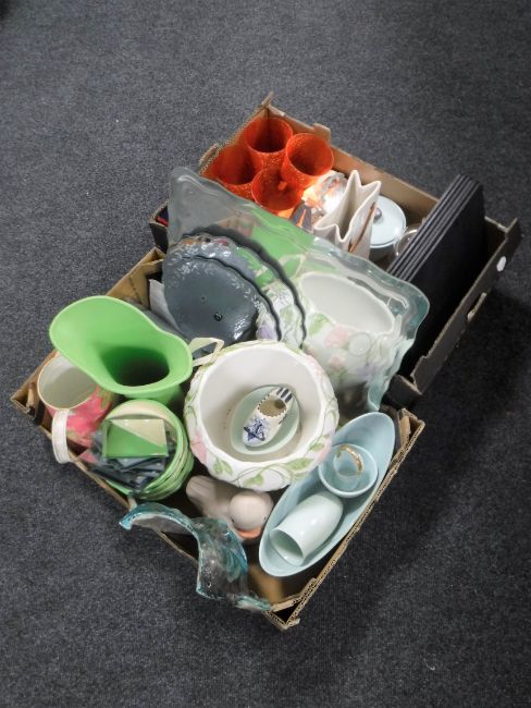Three boxes of 20th century glassware, mirrors, crystal etc