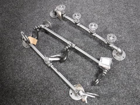 Three reproduction industrial metal coat hooks