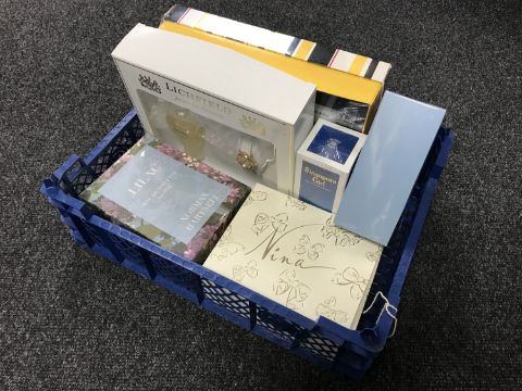 A crate of various perfumes and gift sets, Bulgari etc
