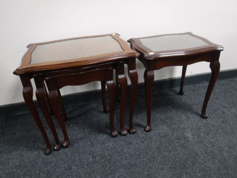 A nest of three mahogany glass topped tables, together with a glass topped side table
