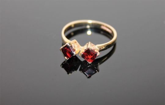 A 9ct gold two-stone garnet ring, size O