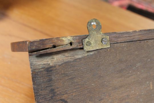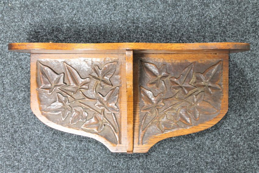 51cm wide by 25cm high by 16cm deep. Some losses and splits to wood on reverse of shelf. Generally in good condition.