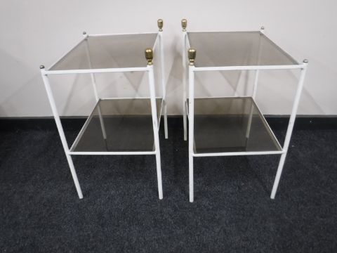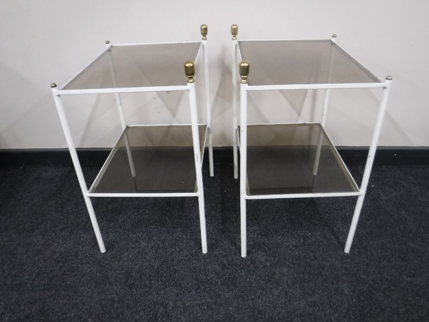 A pair of mid twentieth century metal and smoked glass two tier side tables