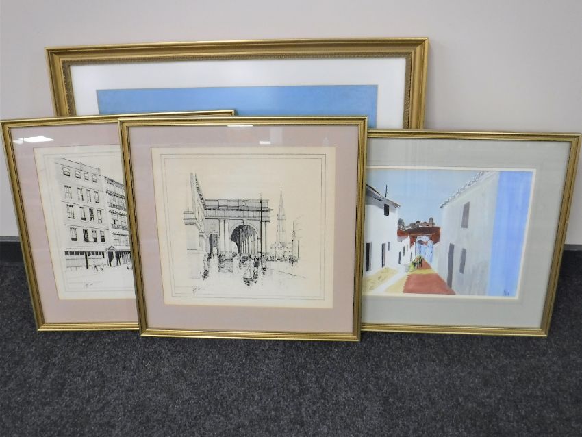 A group of four gilt framed pictures and prints, Newcastle scenes etc