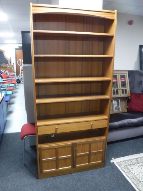 A set of late twentieth century teak Nathan bookshelves fitted a drawer
