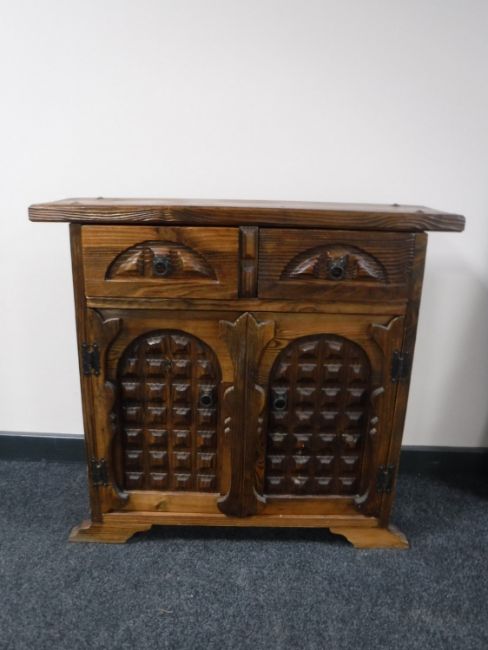 A rustic pine cabinet fitted two drawers