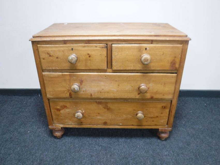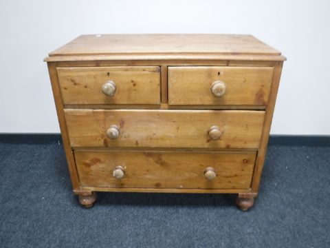 An antique pine four drawer chest