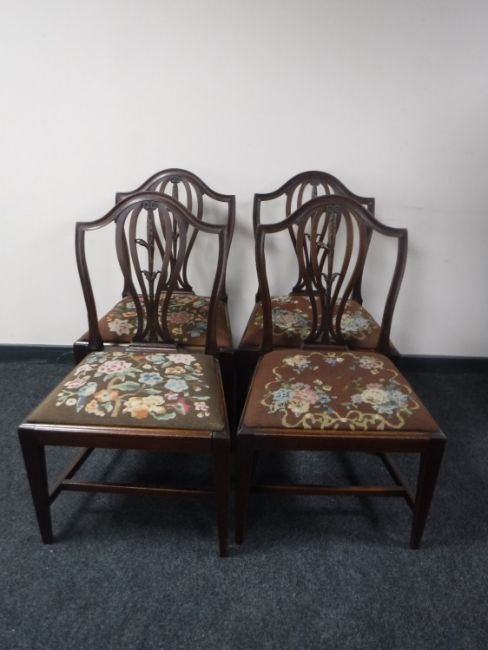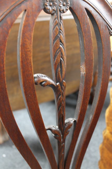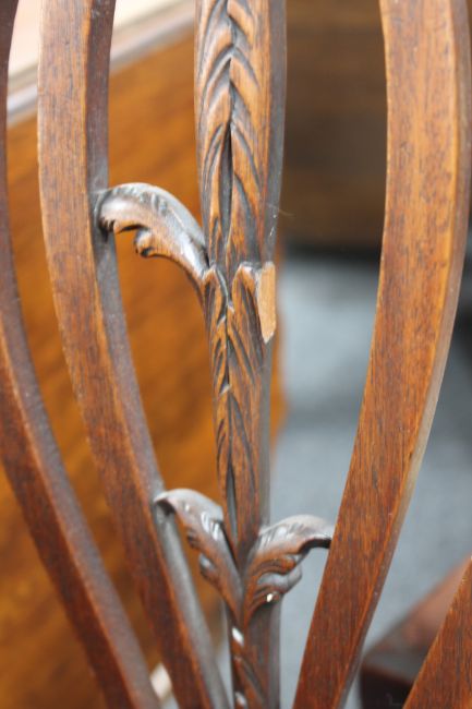 All four chairs with a small piece missing to the carved back rest. Also with minor typical scuffs and scratches,