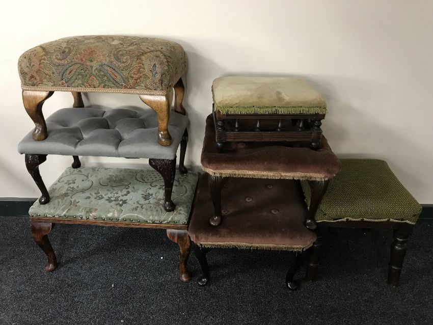 Seven early 20th century and later upholstered footstools