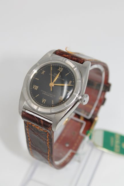 The watch is in good condition. It winds, runs and adjusts correctly. The case has typical light surface scratches. The dial is clean, some of the gilt lettering is faded somewhat in a couple of areas. The dial has been re-finished at some point. Gold plated Rolex buckle with typical surface wear. Movement quite clean.