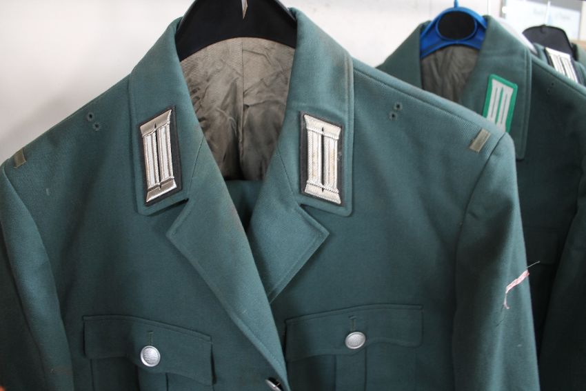 Four military uniforms and three leather cameras cases