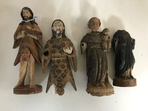 Four antique painted religious figures, the largest 18cm