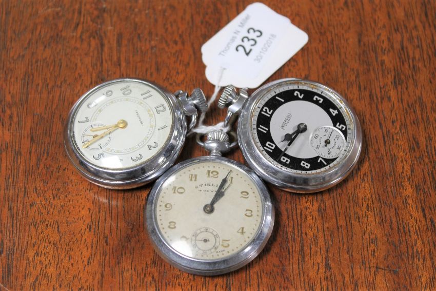 Three vintage pocket watches by Ingersoll and Stirling. (3)