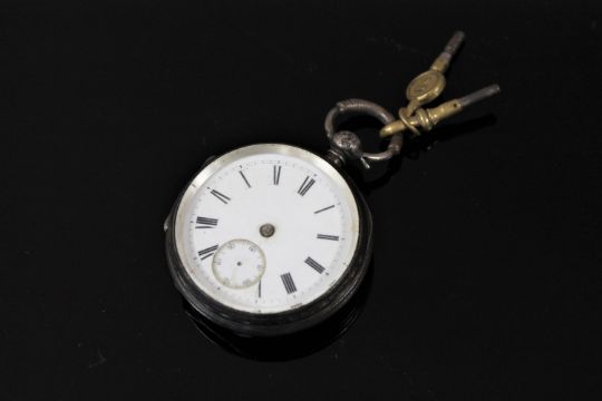 A silver pocket watch and two keys - E R Davies Shrewsbury.