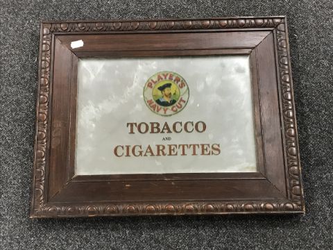 An early 20th century and later oak framed mirror bearing "Player's Navy Cut Tobacco" advertisement