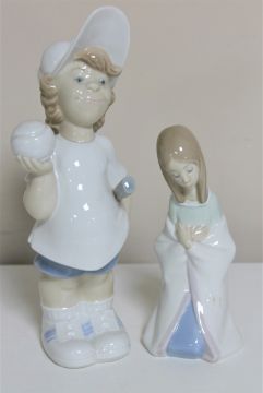 A Lladro figure of a boy with a tennis racket and another figure of a girl (2)