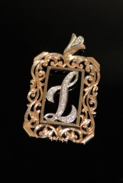 A 14ct gold pendant set 'L' in diamonds, 10.6g.