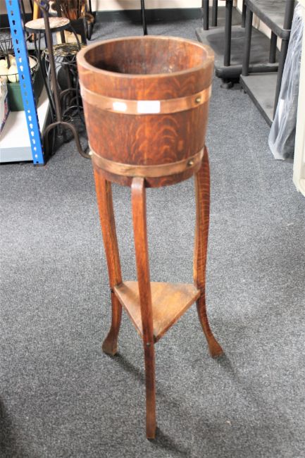 An oak jardiniere on stand