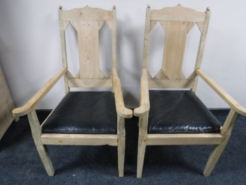 A pair of 19th century stripped pine armchairs