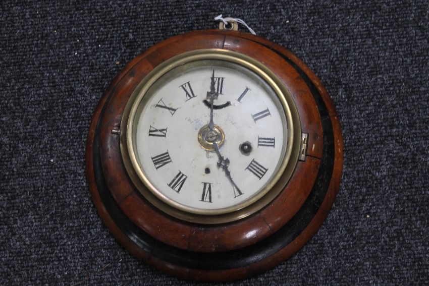 An early 20th century oak cased circular wall clock