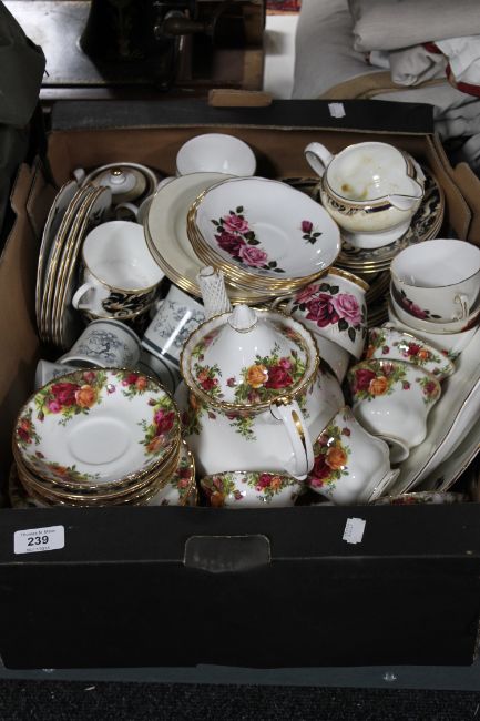 A box of Royal Albert Old Country Roses and other tea china, Colclough etc