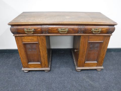 A late Victorian oak pedestal desk