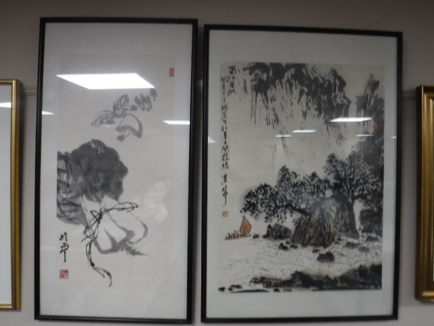 Two Japanese watercolours in silk lined frames
