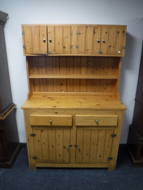 A farmhouse style pine dresser fitted with two drawers