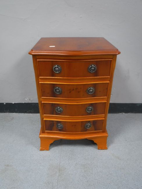 A reproduction yew wood four drawer chest