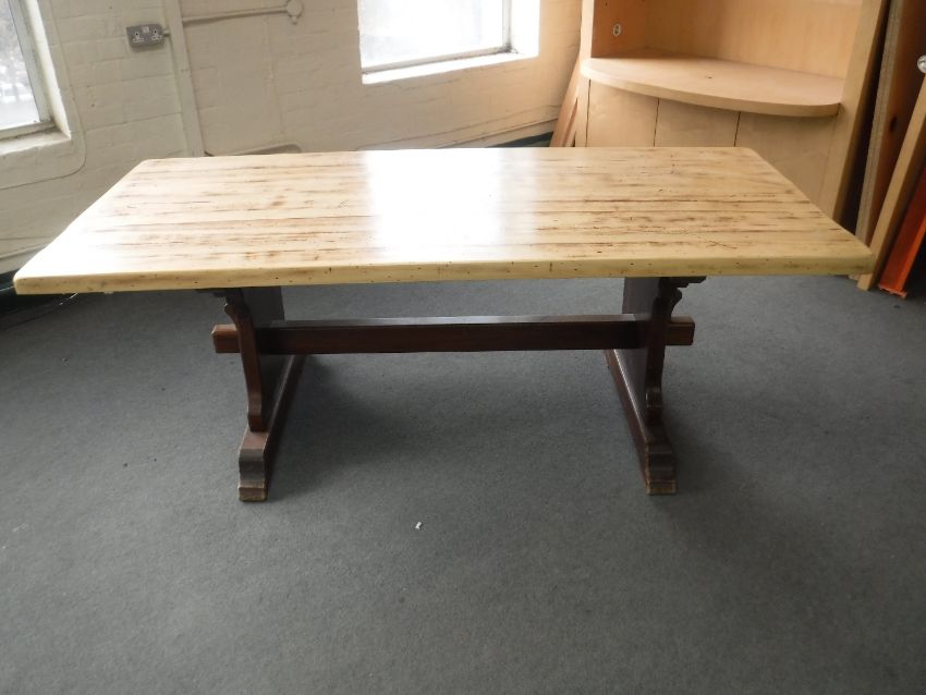 A stripped pine refectory style table
