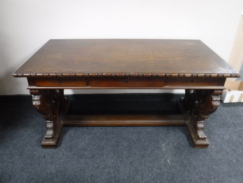 An early 20th century oak library table