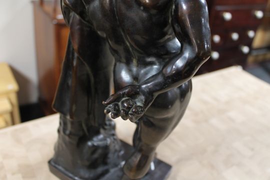 A nineteenth century bronze sculpture depicting The Farnese Hercules standing by a stump, height 41 cm.