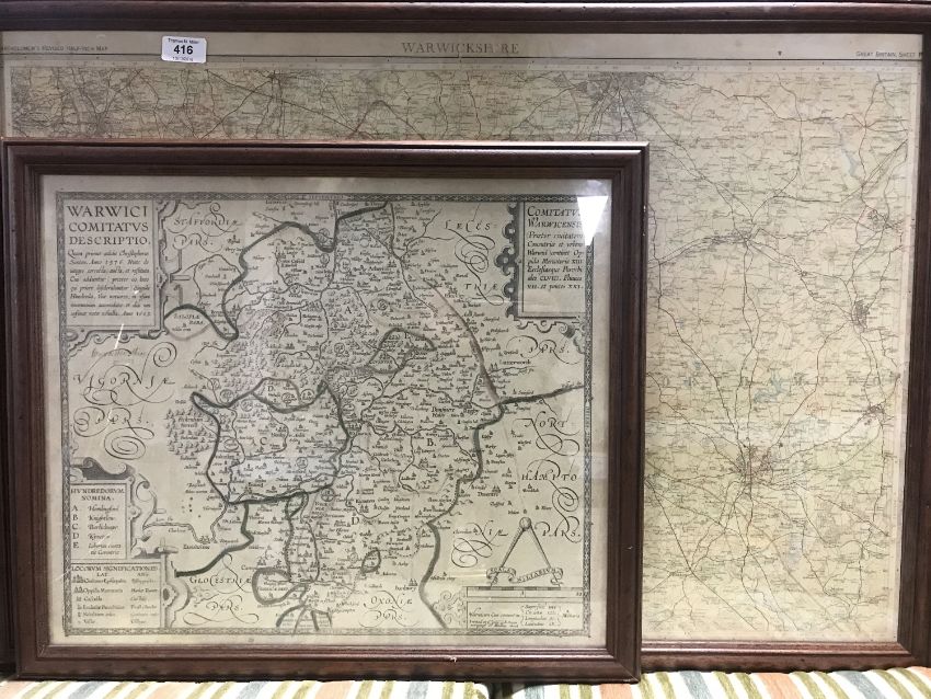 A framed Bartholomew map - Warwickshire and one other of Warwickshire in the 16th century