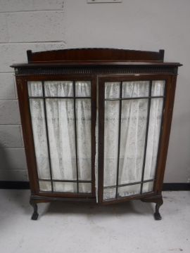 A Victorian mahogany double door display cabinet on claw and ball feet