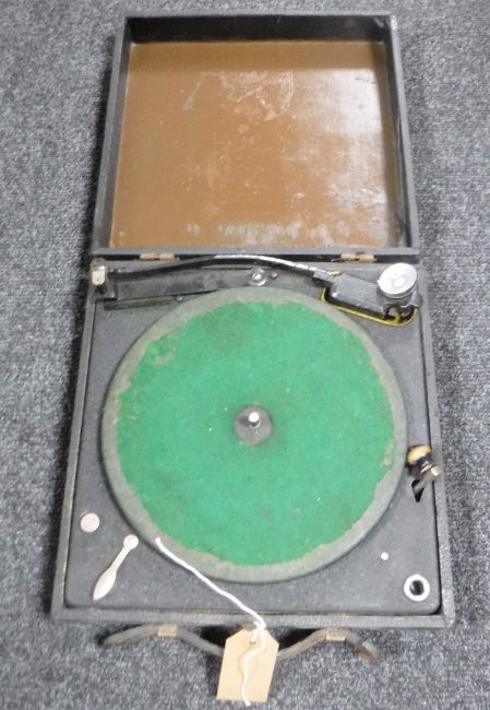 An early 20th century portable record player in case