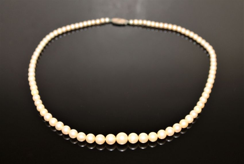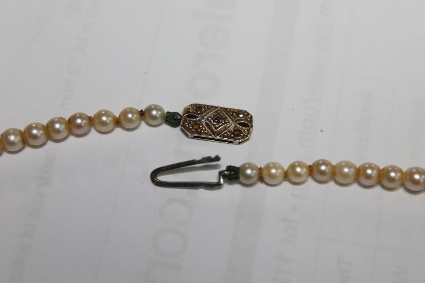 Fine quality strap of graduated pearls on a white gold diamond clasp