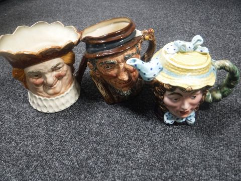 Two Royal Doulton character jugs - Old king Cole and Johnnie Appleseed together with a Beswick Dolly Varden teapot