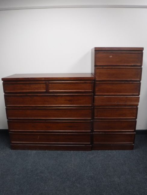 A twentieth century six drawer chest, together with a pair of three drawer chests in a mahogany finish
