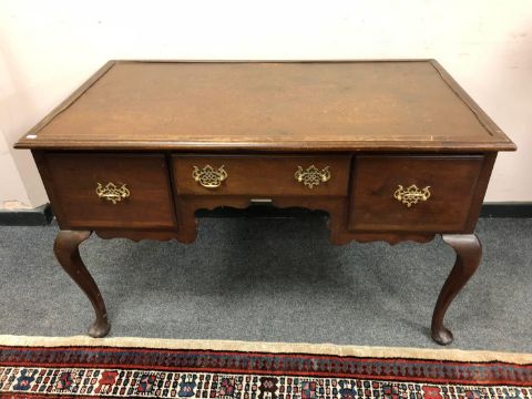 A Georgian style three drawer mahogany desk, width 123cm