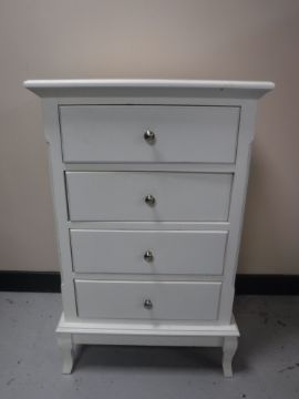 A contemporary white four drawer chest