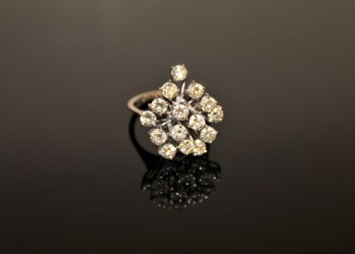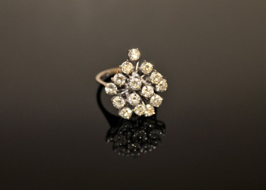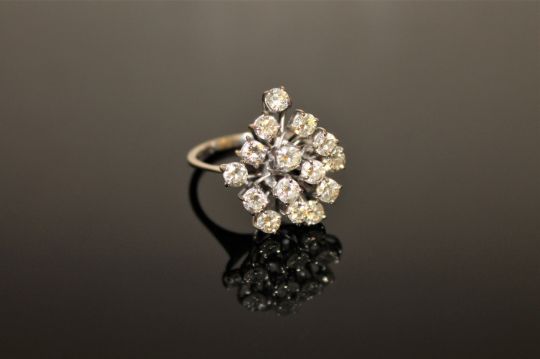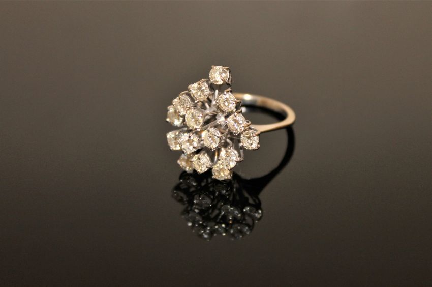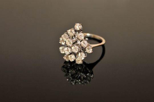 An 18ct gold diamond cluster ring, with fifteen brilliant-cut stones within raised claw settings, the total diamond weight estimated at 3.00 carats, size M/N