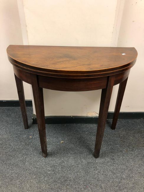 A pair of George III mahogany D-shaped tea tables, width 89cm (2)