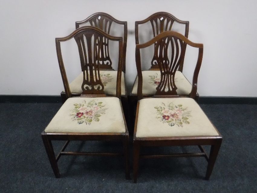 Three late 19th century Hepplewhite style dining chairs and one other similar
