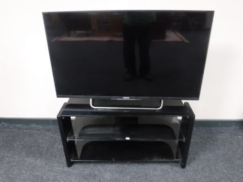 A Sony 42 " Smart TV model KDL-42W 829B on three tier stand, with lead and remote